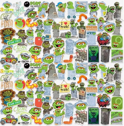 However, $20 USD for one hundred vinyl stickers is quite a deal! For example, for Sesame Street, there are sets of one character, a variety of characters, letters, numbers, and this one Cookie Monster pack for Valentine’s Day giveaways. It’s almost TOO MANY stickers.
